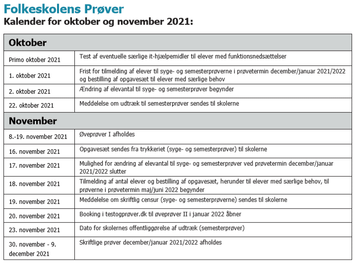 Testogprøver.dk vil blive anvendt til afvikling af skriftlige semesterprøver i december 2021. Eleverne skal bookes til alle prøver, der afvikles via testogprøver.dk. Eleverne kan bookes frem til prøvens start.