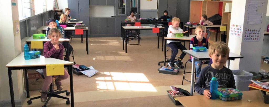 ”Efter mange ugers hjemmeskole, kunne vi endelig holde skole for en del af vores elever igen. Mini0-til 5.klasse mødte i går ind til en noget anderledes skoleform med afstandskrav, mange forbehold, megen håndvask, meget udeundervisning og mange ændrede ting i løbet af dagen. Men solen skinner, og det er skønt at være tilbage på skolen sammen med klassekammeraterne og skolens voksne. Vores elever har taget fantastisk godt imod den nye skolehverdag og hjælper med at få det hele til at fungere. Og så skal det nok gå. Det bliver godt igen”.