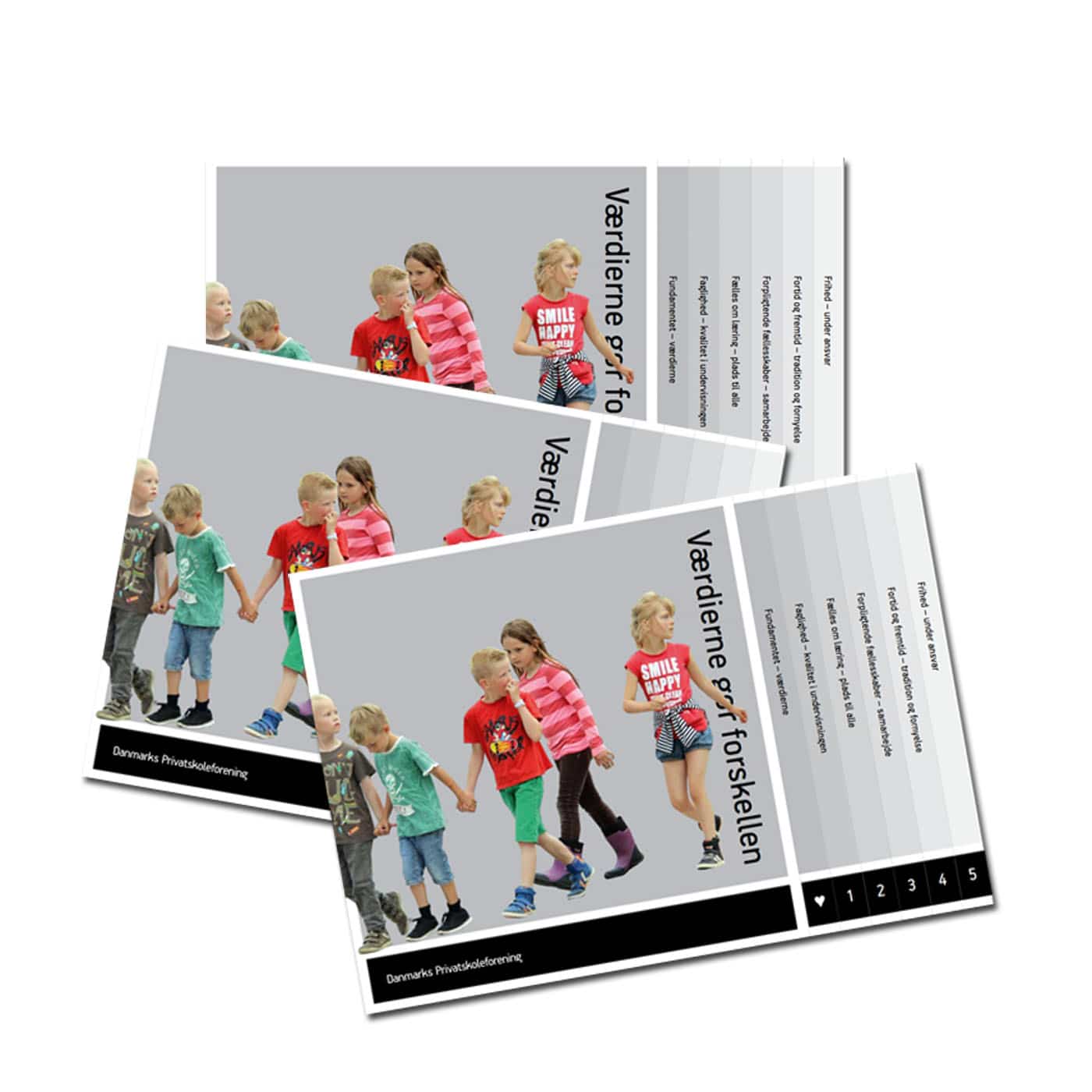“Værdierne gør forskellen” henvender sig til alle, der gerne vil vide noget mere om privatskolerne. Publikationen er fra 2015.